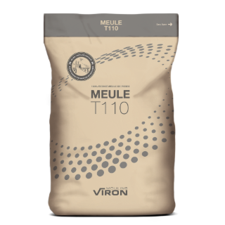 Farine T110 écrasée sur meule de pierre. Cette farine contient la quasi totalité de l'enveloppe du grain, et est parfaite pour la réalisation de pain à la mie brune...