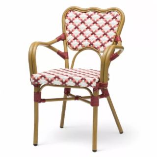 Le fauteuil de terrasse parisienne au style bohème Le fauteuil de terrasse ST GERMAIN - tressage rouge et blanc est un choix idéal un extérieur de restaurant, café ou...