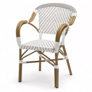 Le fauteuil de terrasse parisienne au style bohème Le fauteuil de terrasse ST GERMAIN - tressage bordeaux et blanc est un choix idéal un extérieur de restaurant, café...