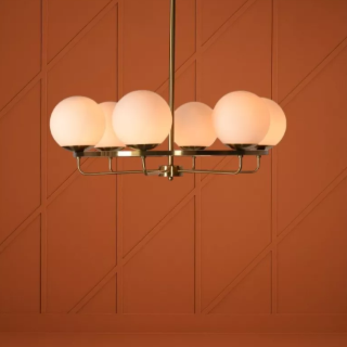 Lustre BRASSERIE - Métal Doré - 6 Globes en verre opalin