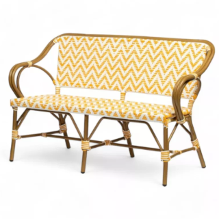 La banquette de terrasse parisienne au tressage graphique La banquette de terrasse ALMA - tressage jaune et blanc offre un design à la fois rétro et tendance. Elément...