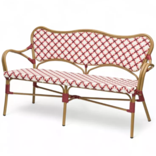 La banquette de terrasse parisienne au tressage haute couture La grande banquette de terrasse ST GERMAIN - tressage rouge et blanc offre un design à la fois rétro et...