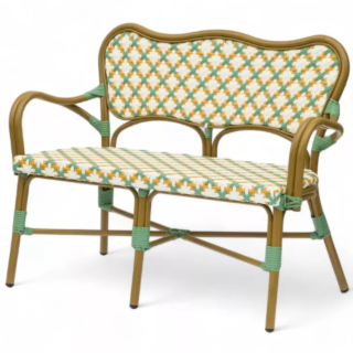 La banquette de terrasse parisienne au tressage haute couture La banquette de terrasse ST GERMAIN - tressage vert jaune et blanc offre un design à la fois rétro et...