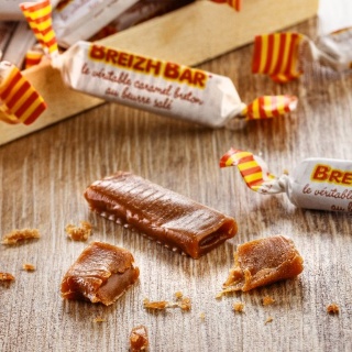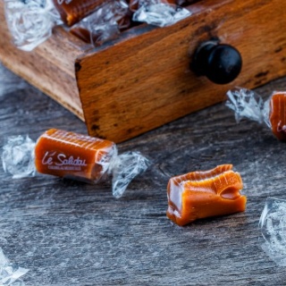 La petite barre de caramel tendre au beurre salé. Une forme iconique de la confiserie française. Produit disponible en conventionnel ou en bio. Idéal comme bonbon...