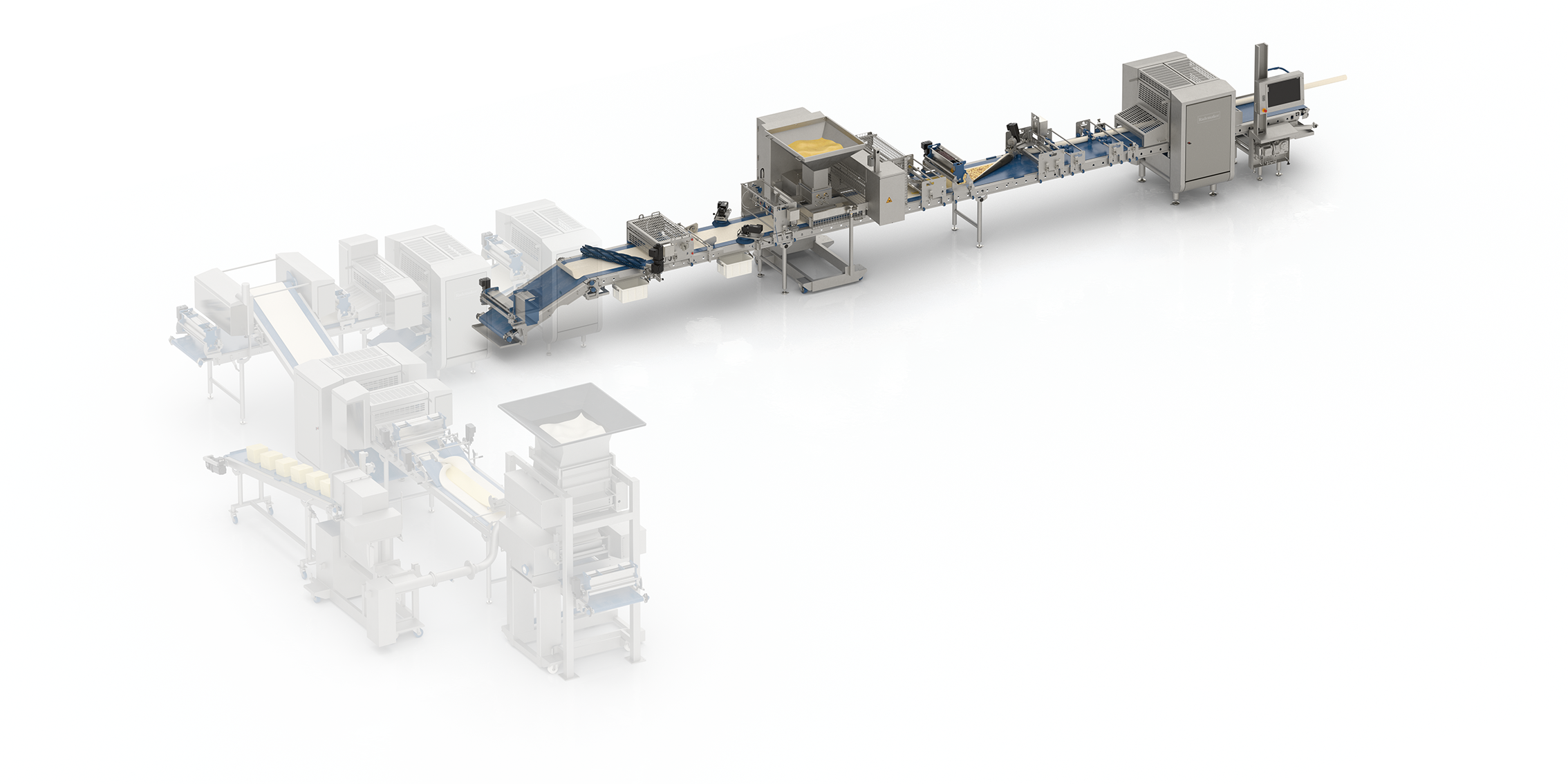 Grâce à cette ligne Rademaker, vous pourrez produire des pâtisseries de toutes formes et de toutes tailles, garnies ou pas. De plus, sa conduite de ligne est la plus conviviale qui soit !