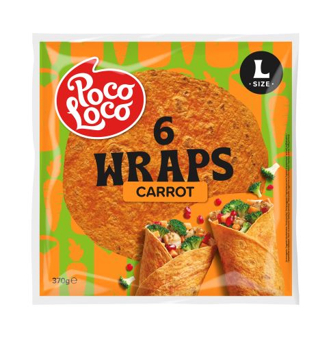 Le Wrap Carotte POCO LOCO est une galette de blé à la texture moelleuse, fabriqué avec 30% de jus de carotte. Cela amène une couleur orange vif, qui attire l’œil, permettant de proposer une offre moderne, différentiante, dans des recettes « instagrammables ». La carotte offre à ce wrap un goût légèrement sucré.