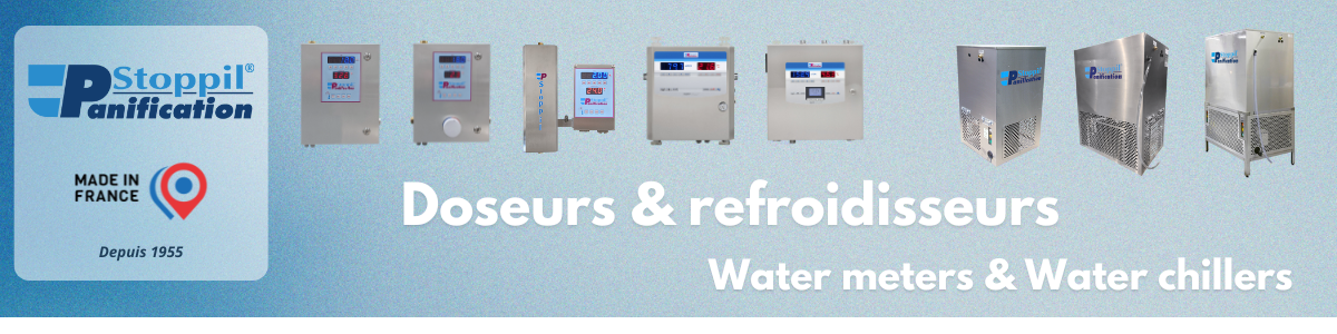 Stoppil conçoit, fabrique et commercialise depuis 60 ans des doseurs d'eau pour la boulagerie et l'industrie agroalimentaire. Nous vous proposons également des refroidisseurs d'eau. Situé en région parisienne, nous sommes l'acteur historique du doseur pour le pétrin du boulanger ! Nous proposons une gamme de doseurs électroniques tout Inox de grande précision, du simple modèle pour le dosage d'eau sans réglage de la température, jusqu'au doseur industriel pour le dosage de l'eau froide, chaude et de l'eau glacée. Notre modèle phare est un doseur avec mitigeur thermostatique pour le réglage de la température entre 1 et 60°C. Il permet d'obtenir jusqu'à 25 litres d'eau / minute. Notre gamme de refroidisseurs compacts permet la distribution d'eau glacée de façon ultra hygiénique ! L'eau distribuée circule dans un serpentin et n'est jamais en contact de l'air. Découvrez nos matériels auprès de nos commerciaux pendant le salon ou contactez-nous pour un conseil sur votre insallation par mail : commercial@stoppil.fr ou par téléphone au 01.60.31.55.58 !