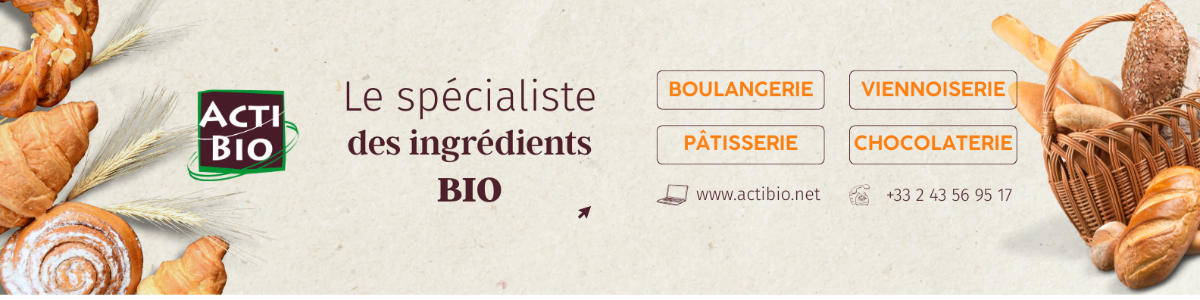 Actibio, le spécialiste des ingrédients bio ! Actibio s'impose comme le fournisseur de référence en matières premières biologiques pour la boulangerie, viennoiserie, pâtisserie et snacking. Avec plus de 1500 références biologiques, l'entreprise permet aux professionnels de centraliser leurs achats et de couvrir l'ensemble de leurs besoins. Notre gamme s'étend de la : - crèmerie (beurre, tourage, crème, emmental, mozzarella) aux, - graines (lin, sésame, tournesol, pavot...), en passant par - les aides à la boulangerie (psyllium, arrow root, levure), - les sucres, - les produits sucrants, - les chocolats (pépites, palets, couverture), - les fruits secs (abricots, figues, raisins, cranberries, goji, tomates séchées...), - les fruits à coque sous toutes leurs formes (entiers, hachés, poudre : amandes, noisettes, noix, pécan, pistaches...), - les épices et, - les conserves salées comme le concentré de tomate. Certifiée IFS Food V8, Actibio garantit qualité, sécurité et traçabilité. Sa logistique performante et ses livraisons rapides partout en France en font un partenaire fiable et réactif. Plus qu'un fournisseur, Actibio accompagne la BVP avec des matières premières issues de filières responsables, permettant des productions et consommations vertueuses, adaptées aux attentes de consommateurs toujours lus exigeants.