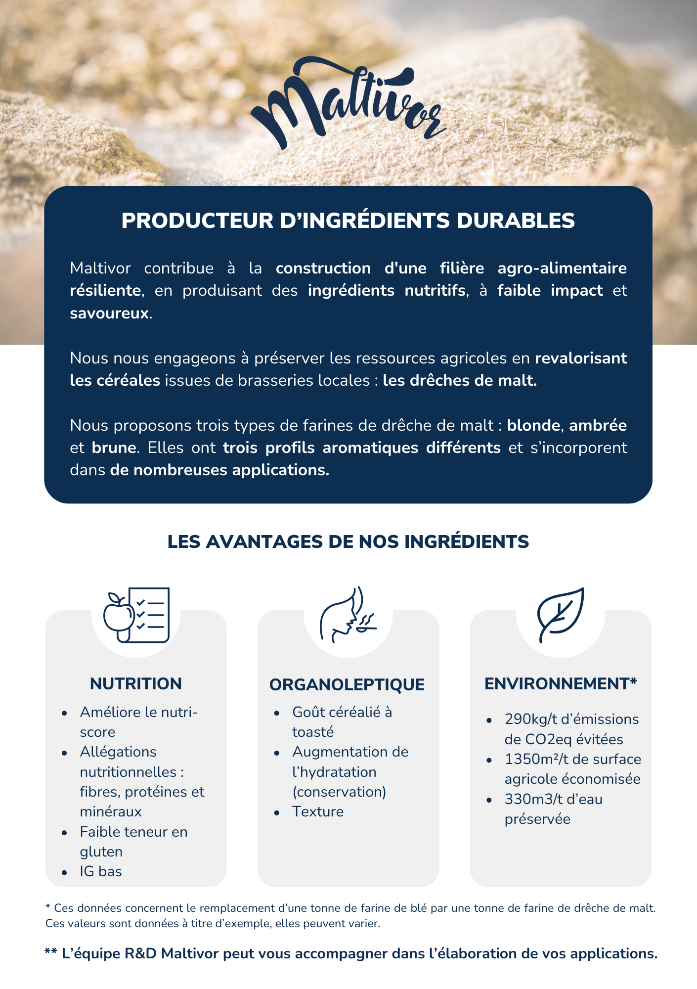 Maltivor contribue à la construction d'une filière agro-alimentaire résiliente, en produisant des ingrédients nutritifs, à faible impact et savoureux.